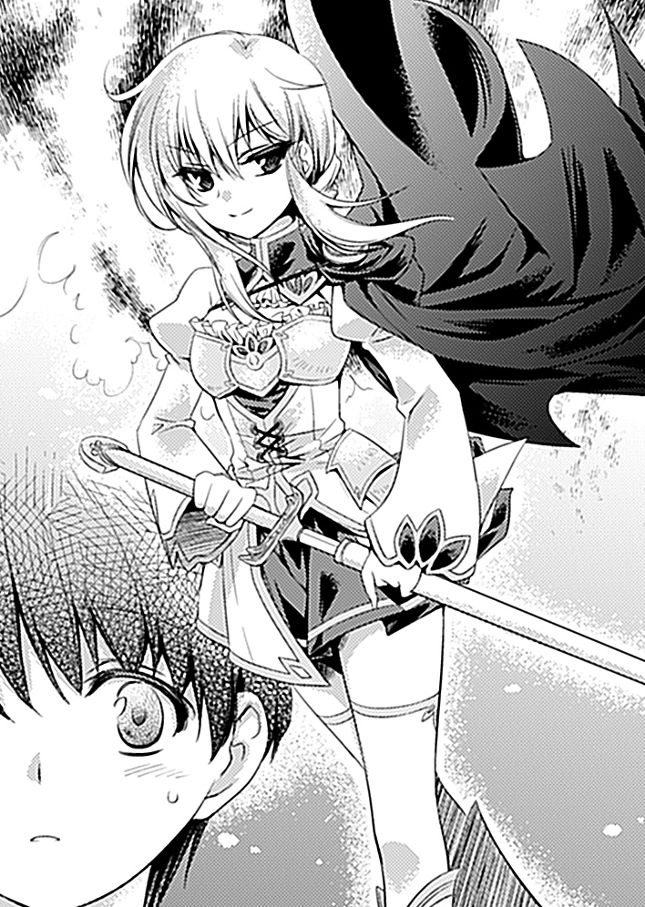 It was a girl, but she was not quite as young as Ange and Machina. She had a slender grace, but her body was still trained and fit. She wore a white armor dress, she possessed the refinement only seen in upper class girls, and that refinement oddly coexisted with the bloody aura of a warrior. She was a knight.
