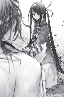 Asaka was silent for a while, thinking. However, she finally got on her knees and respectfully offered her sword to Shoma with both hands. For someone militaristic like Asaka, offering her sword meant she was offering her trust and allegiance. “I give you my sword for the time being. Use it as you will, Master.” She exchanged glances with Shoma and nodded.