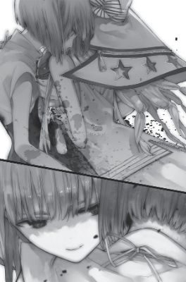 Hotaru’s body convulsed as if struck by lightning, while she coughed up copious amounts of blood. The girl took a step back to dodge the stream. The Initiator’s vision blurred as she fell to her knees. Her fingertips felt cold. Her blurred eyesight looked up at her enemy. The girl in the dress grinned as she looked back down at her.