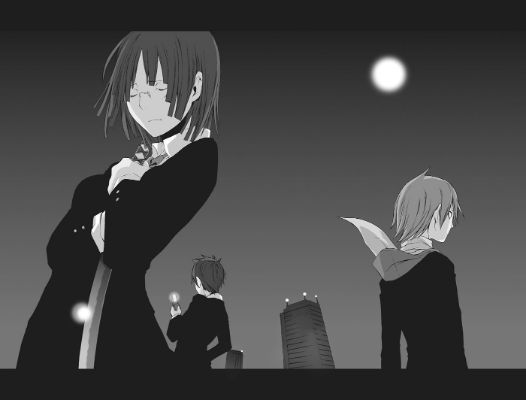 What about me? I love Shinra…I think. But is my loving providing Shinra with anything? Is it making Shinra happy? she wondered idly as she stared up at the sky. Then she considered Mikado and the brown-haired boy, the ones who hung around with Anri.
