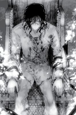 The man slowly looked up. His dark, tangled hair rustled, and his crimson eyes glittered. From what Kaito could see of his facial features behind the hair, he possessed a certain androgynous beauty. But the instant he looked at the man, his throat swelled up, intimidated, and he understood something.