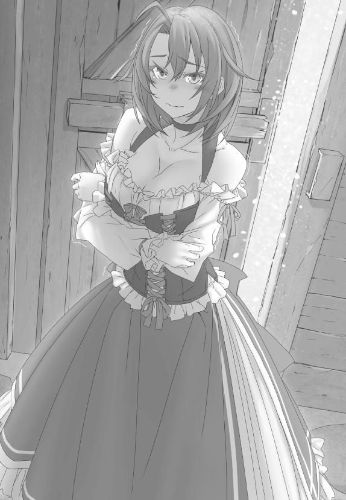 Her expression wasn’t the only unusual thing about her, though; her clothes were different, too. She wore a lacy shirt that exposed her shoulders. A corset was wrapped around her waist, emphasizing her chest, and she was wearing a red pleated skirt. The outfit was not her usual work attire, nor the dress she had worn to the festival. She was obviously in her finest clothes.