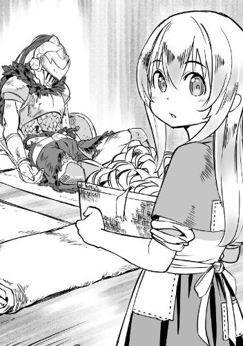 She stopped in surprise at the unexpected summons, sweat on her brow. She looked up to see a handsome adventurer with a spear supporting another adventurer in leather armor on his shoulder.