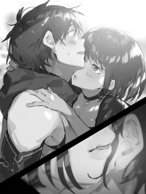 “I see. So when an agreeable man is next to me, this is how I feel, is it?” Setora pressed her nose and lips to Haruhiro’s neck, breathing in as if she were sniffing him, then let out a hot sigh.