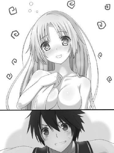 The sight of all four girls, half-naked from the waist up and sidling towards him, made Yuuto gasp and reflexively draw backwards.