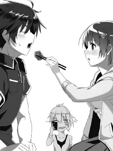“Y-Yuu-kun, do you... want me to feed you?” Mitsuki was bright red and fidgeting, but she still looked right at Yuuto with intensity in her eyes.