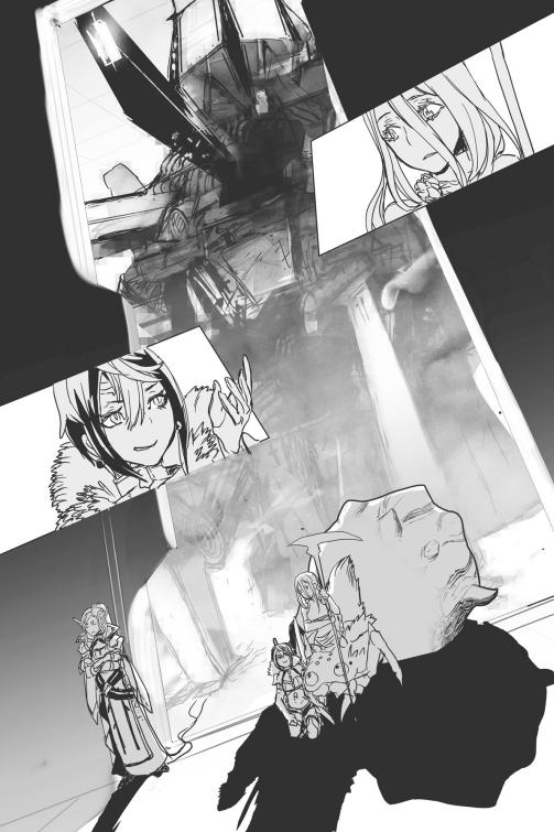 Potimas shoots her a look, silently asking what the deal is, but the Demon Lord just shrugs.