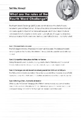 “Oh, right, Eimei School’s Fourth Ward Challenge starts tomorrow! I’ve already told you how it’ll work in previous homerooms, but let’s go over the basics one more time!”