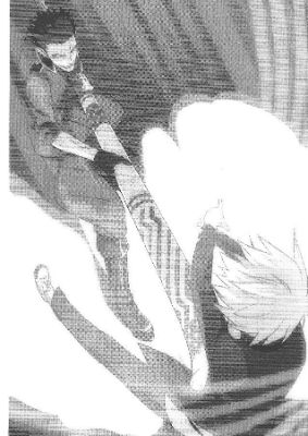 Izayoi twist past the flute that could manipulate strong vibrations, and went for a close kick. Due to his bad posture, Weser could narrowly avoid Izayoi's attacks.