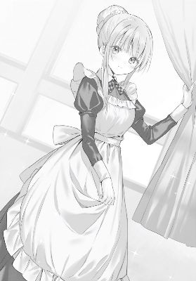 Closing the door behind him, he looked at Mahiru, who was standing directly in front of him. The maid dress that Mahiru was wearing was the type with a long skirt that reached down to her ankles, and also had long sleeves. It was a classical type of maid dress that also incorporated a moderately modernized style in some parts, and it was a combination of long sleeves, a long navy blue one-piece dress, and an apron that puffed up around her upper arms, looking as though there was air inside.
