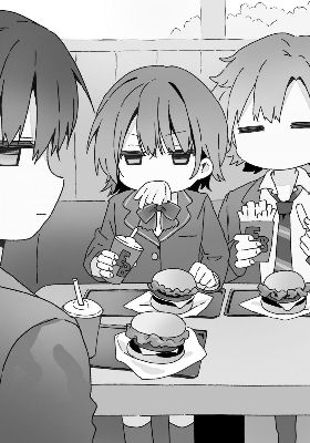 Amane, knowing that letting Chitose run wild would only make her more unbearable, asked her boyfriend for assistance. Itsuki, heaving an exaggerated shrug, playfully stuffed a handful of fries into Chitose’s mouth to keep her quiet. Of course, she couldn’t speak properly with a mouthful of fries. Amane decided to pay no heed to the muffled grumbles coming from her throat despite the piercing glare she sent him.