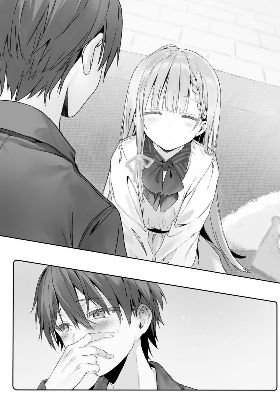 Mahiru, undoubtedly expecting something, looked so incredibly adorable that Amane inadvertently covered his mouth with his hand in an effort to hide his grin. Even though she still couldn’t see him, he felt the urge to hide it nonetheless. The sight of his girlfriend waiting for him expectantly was just too endearing to bear.