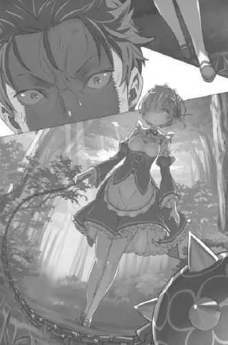 As Subaru continued shaking his head without a word, Rem sighed and discarded the knife into the forest thicket.