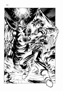 Both of them summoned a barrier around them, but Childman’s barrier was less than perfect. Parts of his clothes started to catch fire, he could be in real danger. Azalie loomed over him and prepared her next attack. Orphen smirked and thought it ironic.