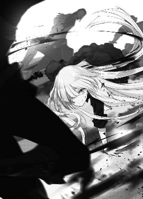 “Right-o,” the girl hummed, twirling her sword about to bring it level. Then she threw it, casual and carefree, though the blade soared as though it had been shot from a great bow. It mercilessly pierced through Cliff’s armor, the point of the black blade jutting out from the back of his chest as a black mist began to emanate from it. Cliff gasped, twitched a few times, then collapsed to the ground like a puppet with its strings cut. The girl’s cheerful voice carried through the silence that covered the Canalia Highway.