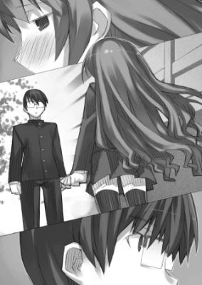 After saying goodbye and leaving like that, Aisaka had to be somewhere nearby. She would be walking by herself, wearing an expression that said she was completely fine, while hiding a heart no one else knew. And when she turned her back to Kitamura, Ryuuji knew she must have cried with a voice no one else knew, too. With uncertain steps, while no one was looking, she was letting herself cry. He was certain of that.