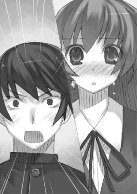 This was Aisaka, after all. He didn’t know what kind of blunder she might make. She might trip. She might fall down the stairs. She might get nervous and tongue-tied and start crying. Whatever the blunder, he had to go along because Aisaka was a super-epic klutz—and also because he was the only one who knew that truth.